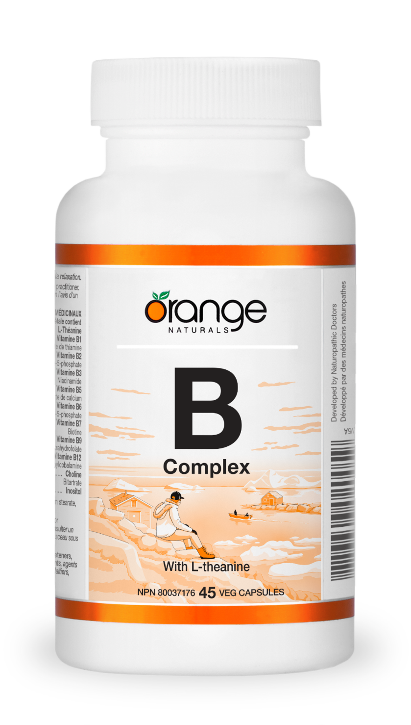 Vitamin B-complexes are often called “stress formulas” for their ability to support the vital energy systems of the body. B vitamins work synergistically to help the body use its carbs, fats and proteins in the most efficient and effective way possible and boost energy production. We have added L-theanine to complement our full spectrum B-Complex. L-theanine is a powerful amino acid that promotes a restful, relaxed state without diminishing alertness so that you can stay focused and productive. So sit back, relax and let Orange Naturals B-Complex do the work!